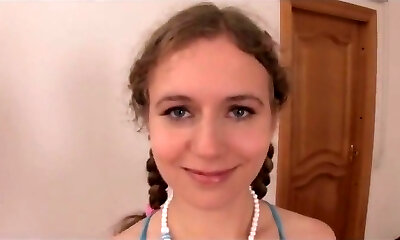 Ultra-cute brown haired neighbor has ass-fuck sex for the first time