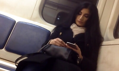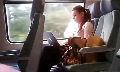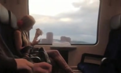 DickFlash在火车上的陌生人显示奶,因为她看到她手淫