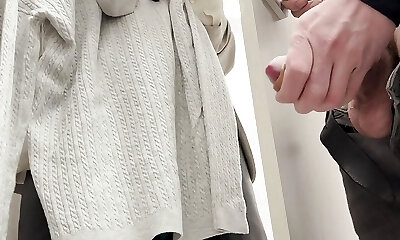 公共迪克闪光在服装店的助理前结束了一个口交和quickie在更衣室