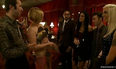 魅力白金金发女郎与多汁的baps rails男子气概和给她的头在剧院