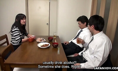 日本家庭主妇是让她的姐夫他妈的她的阴部,而她的丈夫在工作