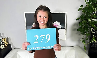 Casting amateur babe deepthroats and gets fucked in vulva