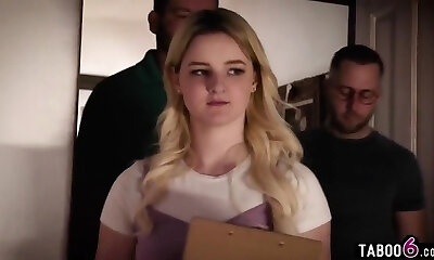 मासूम किशोर गोरा डबल बिल्ली दो पुराने लोगों द्वारा गड़बड़ - एलिजा ईव्स