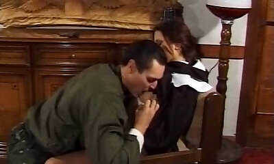 साथी एक युवा सुंदर महिला को मारता है और बड़े स्तन के साथ नर्स का पीछा करता है ।