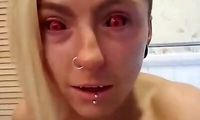 Blindfolded blowjob from a teenage slut with a pierced tongue