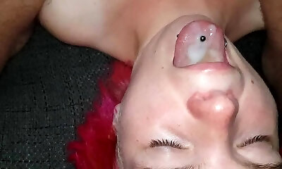 这个粉红色的头发的妓女喜欢抽搐在阳台上,我爱她的缝