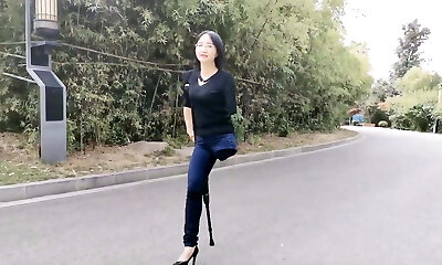 角质亚洲二人穿透户外。