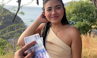 美丽的游客欺骗她的丈夫与一个陌生人的钱