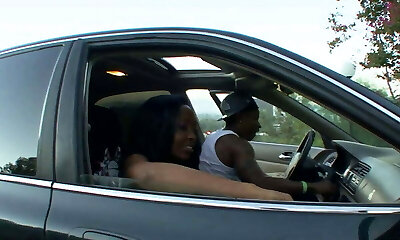 年轻的尤物拿起公共卡车挂钩