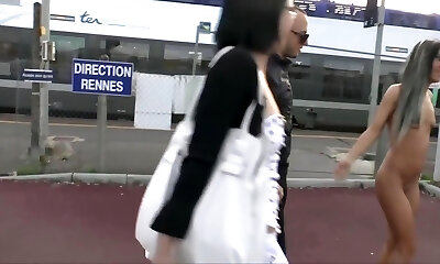 她在车站脱衣服路人无法抗拒和螺丝他的背面