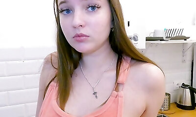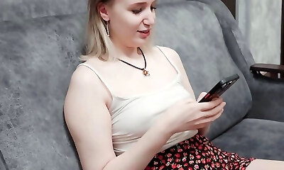害羞的俄罗斯女孩看色情在她的手机和自慰,呻吟的乐趣