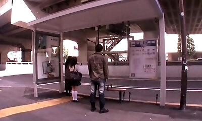 学校的女孩从日本让她的朋友他妈的她