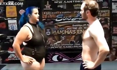 凯莉挑衅占主导地位混合裸体摔跤战斗白痴